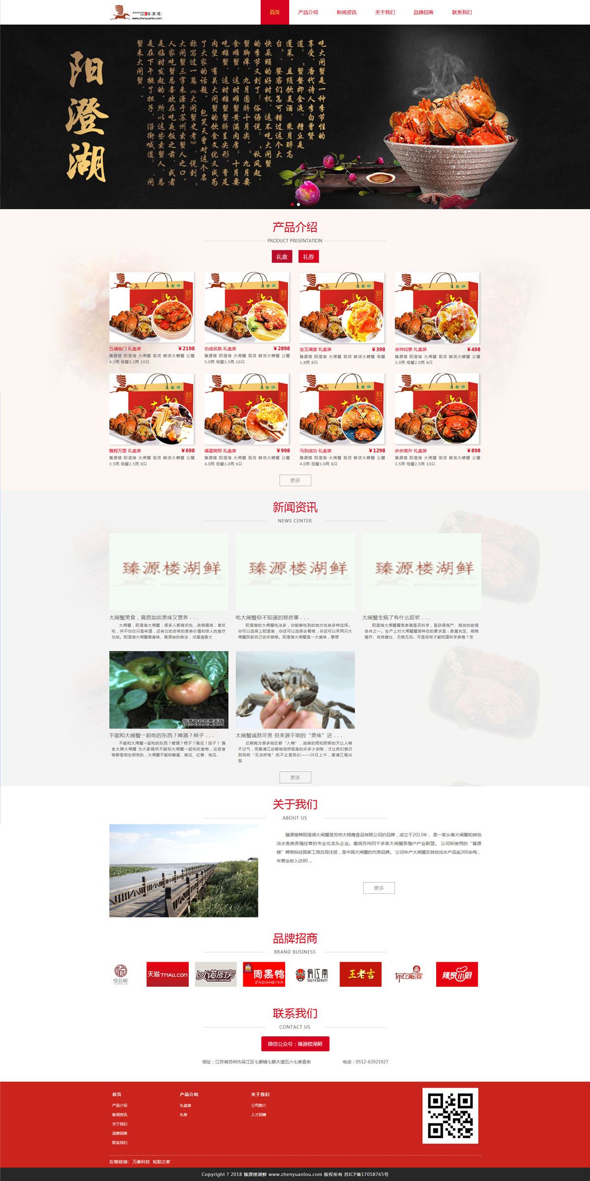 臻源樓牌陽澄湖大閘蟹是蘇州大翔鷹食品有限公司的品牌,成立于2013年, 是一家從事大閘蟹和其他淡水魚類養殖經營的專業化龍頭企業。集結蘇州四千多家大閘蟹養殖戶產業聯盟。